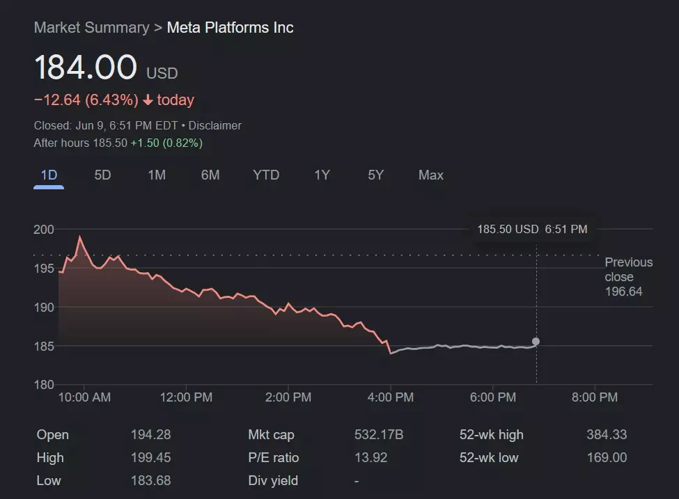 Netnewsledger Meta Stock Drop Biggest In History Apple App Tracking Transparency A Factor